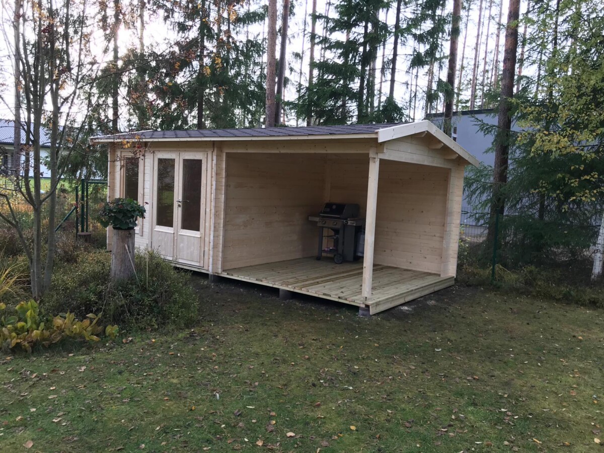 Sådan samles en af de store træhytter med terrasse fra træhytter24 på én dag.
