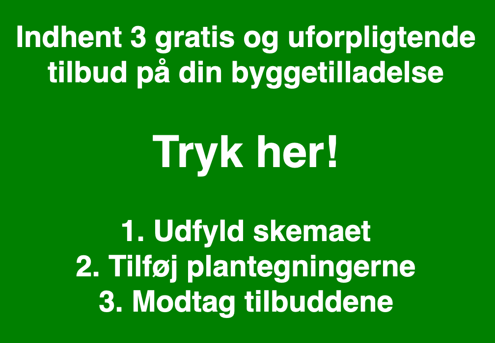 Hvis du ønsker hjælp til at få din byggetilladelse, kan du nemt indhente 3 gratis og uforpligtende tilbud på både rådgivning og udarbejdelse af ansøgningen ved at udfylde formularen hos vores samarbejdspartner 3byggetilbud.